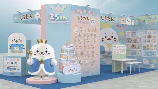 ブース番号 : 西展示棟 4階 3ホール 27-44 「ライセンシングジャパン」は、日本最大級のライセンスビジネス専門イベントで、世界中から1,200を超えるキャラクター・ブランドが出展します。関連する企業や業界関係者、そして消費者との交流の場を提供し、新たなビジネスチャンスを創出することを目的としています。 『しろたん』は、当社の理念である「なごみ・いやし・はげまし・ふれあい」を表現する“たてごとアザラシ”をモデルとしたオリジナルキャラクターです。1999年の誕生以来、やわらかな手触りの抱きぐるみ・ぬいぐるみを主力商品として展開し、今年25周年を迎えます。2017年からはライセンスビジネスをスタートし、流通チャネルの幅を広げ、より多くの方々に『しろたん』の“いやし”をお届けしています。 昨年の「ライセンシングジャパン」出展を契機に、均一価格店舗の商品や、推し活グッズなど、新規ライセンシー先による新たなターゲット層に向けた『しろたん』の商品開発が進んでいます。また、空港と直結したホテル「ヴィラフォンテーヌ グランド 羽田空港」とのコラボレーションルームの展開や、エポスカードの券面デザイン採用など様々な取り組みにつながりました。さらに、企業とコラボレーションしたLINEスタンプの配信など、新規ライセンシー先を含めた『しろたん』のビジネスパートナー数は前年比150%と拡大しています。 今回の出展では、サンリオキャラクターズとのコラボアート第2弾の紹介や、50種類を超える『しろたん』アート集の中から、ふんわり柔らかいタッチの柄やゆるく面白い柄、取引先様にご提案した書下ろしイラストなど、様々なバリエーションの展示を中心に、これまでの各社様との取り組みを詳しくご紹介します。『しろたん』を一緒に盛り上げていただけるライセンシー先のさらなる拡大を目指すとともに、コラボレーション企画・OEM・卸取引といったライセンス契約以外にも幅広いご提案を行い、『しろたん』の魅力をより多くの方々に向けて発信してまいります。