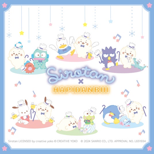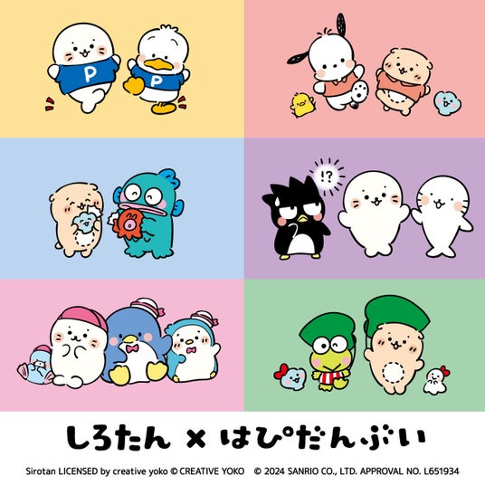 『しろたん』とサンリオキャラクターズのコラボレーション第2弾がリリースされました。サンリオのキャラクターユニット“はぴだんぶい”の仲間たちと『しろたん』がポップなデザインで展開されています。