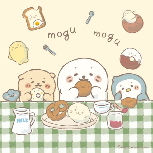 食べることが大好きな『しろたん』“もぐもぐパン”柄