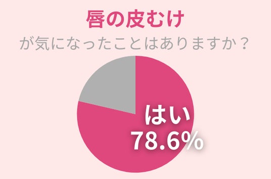 アンケート調査の結果、78.6%の女性が「唇の皮むけ」が気になったことがあるとわかりました。