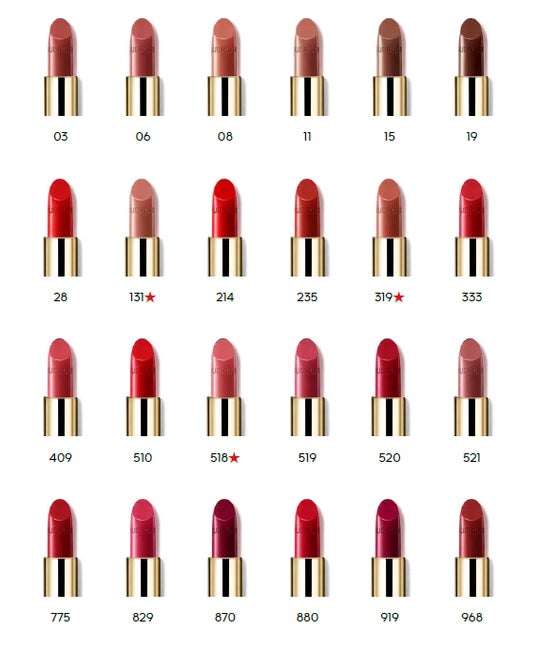 ゲランのノウハウとヴィオレットのアーティスティックな色彩感覚を生かした、新〈ルージュジェ〉は、稀少な原料のみで作られた新たなシェードを展開。高い発色力のピグメントを厳選し、それぞれのピグメントにとって最適な温度とタイミングでオイルと混ぜ合わせることにより、色彩、輝き、深みを最大限引き出すことに成功しました。さらに、カラーブースターであるアビシニアンオイルを配合することで色彩の限界を覆します。