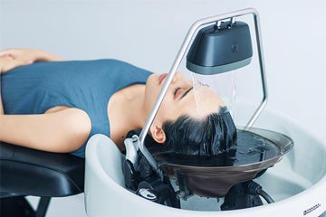 やわらかなお湯の流れで頭全体を包み込む、至福の5分間。炭酸が頭皮や髪の汚れを取り除き、カラー後のダメージも抑えます。