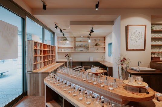 山梨県北杜市にある「金熊香水リゾナーレ八ヶ岳本店」では、実際に香料を嗅いで選んで調香する体験ができます。店舗で作った香りのレシピをカスタムラボに登録すれば、八ヶ岳に行かなくても自分だけの香りを再度オーダーすることが出来るようになります。
