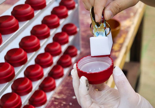 『抹茶シェイカー 加賀山中塗』は、小さく複雑な形状ですが、最終工程は職人による手仕事で一つひとつ、ていねいに仕上げています。