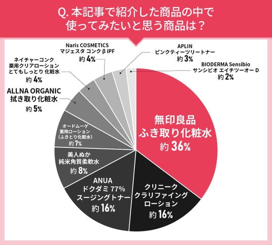 回答者にGranza Beautyの記事『拭き取り化粧水におすすめの10品を美容研究家が実際に試してランキング!古い角質と毛穴のザラつきオフに』にある商品の中でどの商品を使ってみたいかを聞いてみました。ここでは『使ってみたい拭き取り化粧水のTOP5』を紹介します。