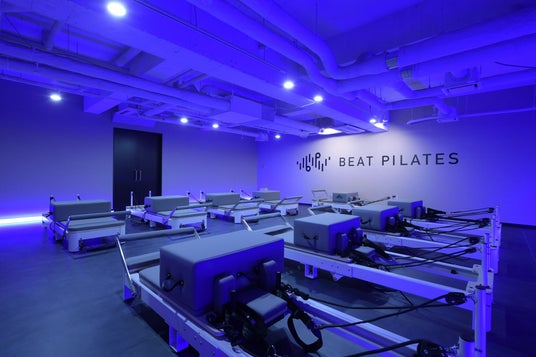 対してBeat Pilatesは、照明の色が赤やピンク、ブルーなどに変わる派手な暗闇スタジオ内で、アップテンポの音楽に合わせてマシンに乗り、ピラティスを行うというアクティブなフィットネス!