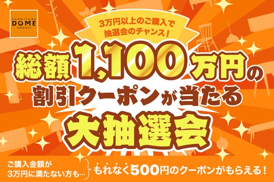 【ファニチャードームが創業110周年】名古屋本店・岡崎店にて記念セールを開催!総額1,100万円分の割引券が当たる抽選会も