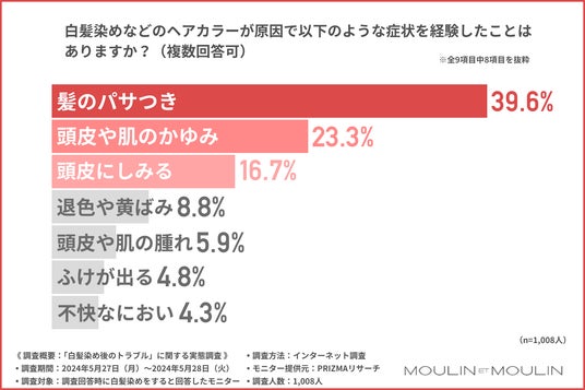 そこで今回、業務用美容関係商品の製造販売を手掛ける株式会社ムーランエムーラン(https://m-moulin.jp/)は、特に40代以上の白髪染めをする方を対象に「白髪染め後のトラブル」に関する実態調査を実施しました。