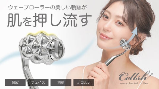 株式会社ニーズ顔まわりからデコルテまで転がすだけの自宅エステ!Cellshローラーが進化して登場!ウェーブ状のヘッドがプロの手技を再現!タッピングするようにリズミカルに肌を刺激!