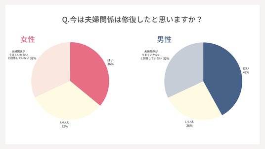 うまくいかない夫婦関係、修復したと思う女性は36%、男性は42%