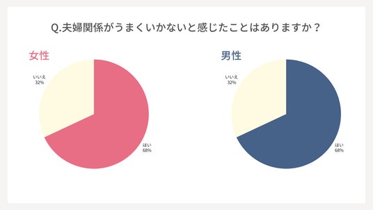 「夫婦関係がうまくいかない」と思ったことがある人は男女ともに68%