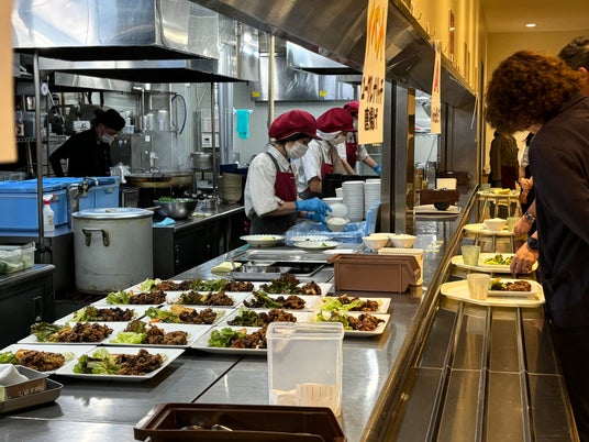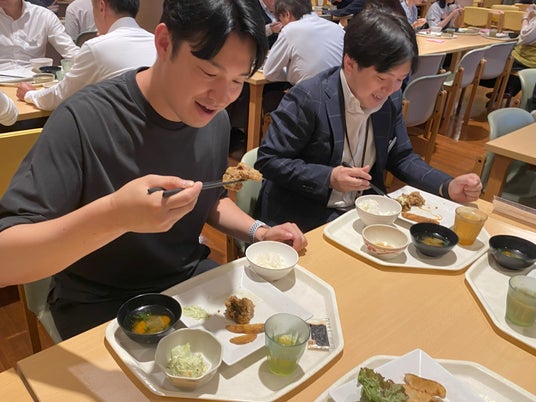 6月20日、丸井グループ本社で「ユーグレナリッチ唐揚げ」を提供した時の様子