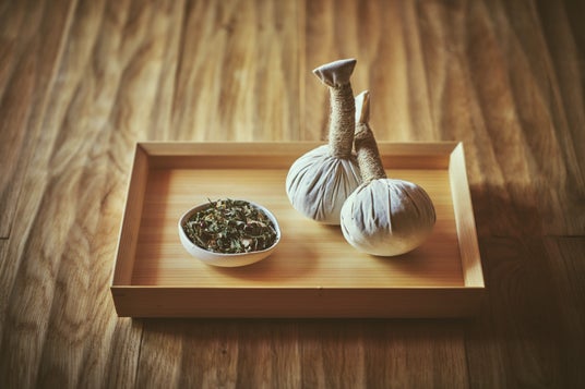 身体全体がゆるんだところで、静岡のお茶やクロモジなど日本古来の薬草をブレンドしたオリジナルのハーブボール「チャーバルボール」で温めながらさらにほぐしていきます。