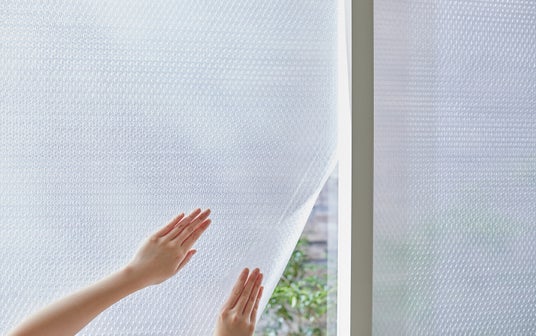 ■窓に水を吹きかけて貼るだけ。 断熱・結露防止の2つの効果を発揮する省エネアイテム