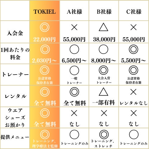 - トレーナー陣は採用倍率30倍以上を勝ち抜きTOKIEL式のカリキュラムを200時間を行った者だけが対応したします。