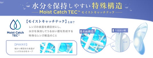 レンズの表面を網目状にすることで水分を保持してうるおい層を形成する「モイストキャッチテック」を採用しています。