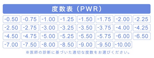 ■度数(PWR): -0.50D~-6.00D(0.25D ステップ)/-6.00D~-10.00D(0.50D ステップ)