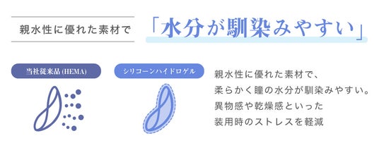 シリコーンハイドロゲル素材は親水性に優れており、水分をキャッチしてキープするため、