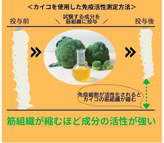 ※ブロッコリー多糖体とはブロッコリー多糖体は、東京大学と当社が共同で開発した「カイコ」を使う免疫活性測定技術によって発見した、世界初の新成分です。普通に調理したブロッコリーではほとんど免疫活性が起こらず、100℃を超える高熱で抽出したブロッコリー多糖体を含むエキスが高い免疫活性を示すことがわかっています。