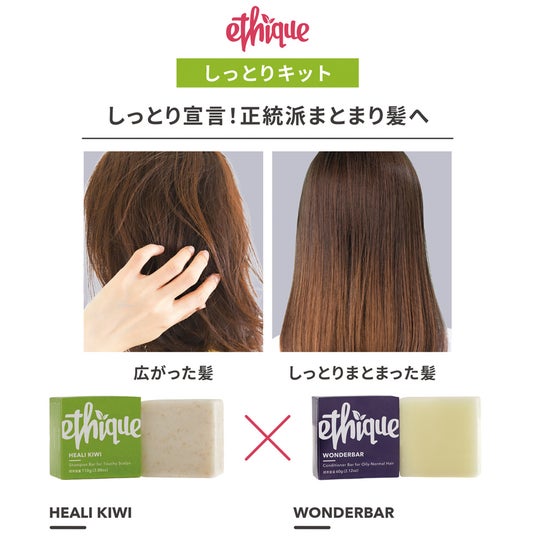 「コンディショナー バー ワンダー バー」が乾燥しがちな髪と頭皮に潤いを与え、艶やかな髪へ。男性にもおすすめのキットです。
