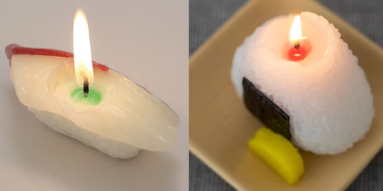 例えば、お寿司キャンドルに火を灯すと中から「ワサビ」が出てくる。おむすびキャンドルからは「梅干し」が出てくる。こんなギミックがあると火を灯すのが楽しみになってきませんか?