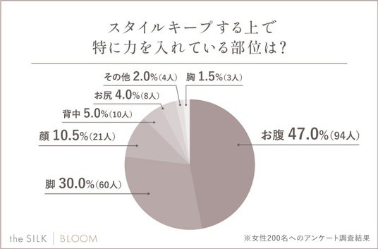 女性200名へアンケート調査し、スタイルを維持するうえで特に力を入れている部位を聞いてみました。
