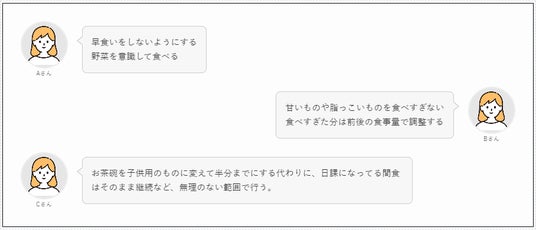 - Cさん:「インターネットでこれからしてみたい事、行きたい場所、着たいタイプの服を見て、それらにふさわしい自分を想像したり体型維持頑張ろうと思う事です。」