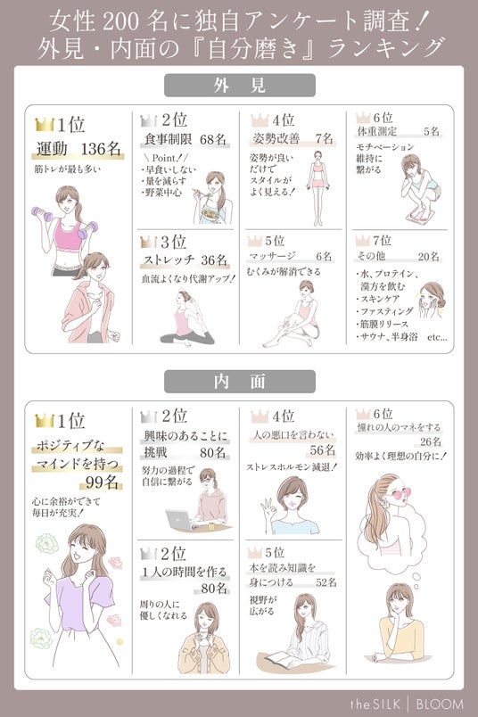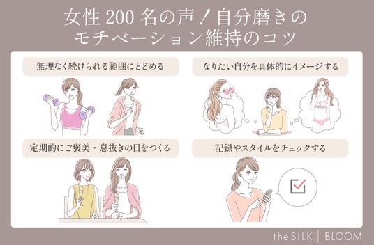 今回the SILK編集部では、女性200名に「自分磨きのモチベーションを維持するコツ」を徹底調査!