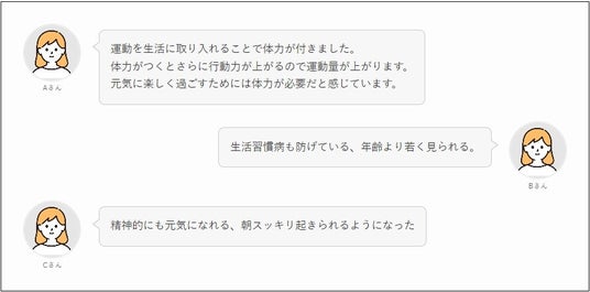 - Bさん:「できる時に運動を適度にすること。続けることが大事だと思う。」