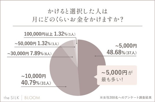 さらに「お金をかけている」と回答した方に対して、月にどれくらいのお金を使っているのか調査した結果はこちら。