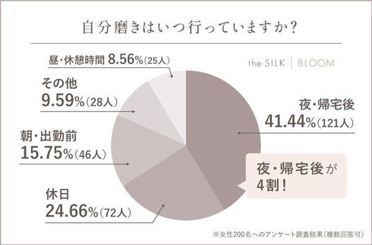 自分磨きの目的やライフスタイルによっても実施する時間帯が異なるため、他の質問よりも回答がばらけているのが印象的です。