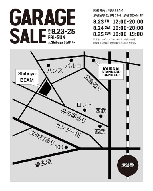 GARAGE SALE at 渋谷 BEAM・開催のお知らせ