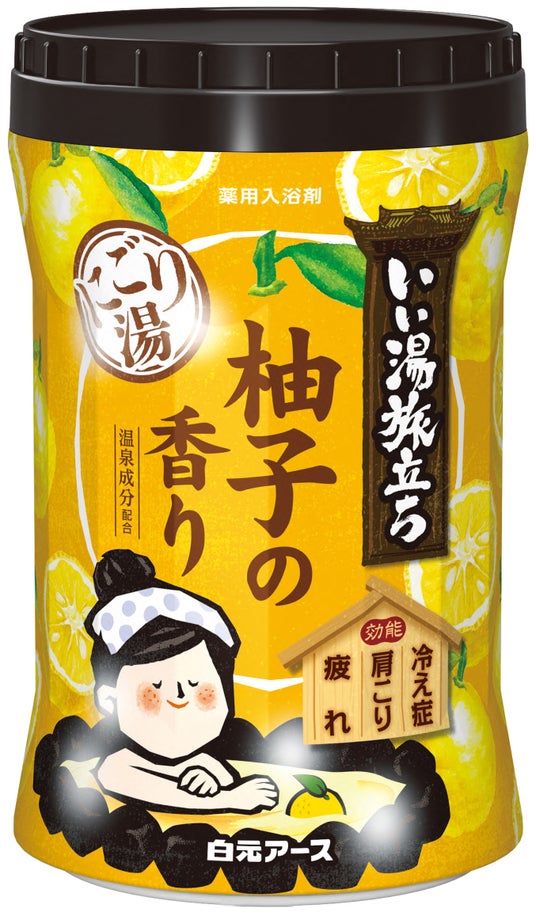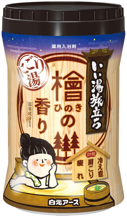 薬用入浴剤「いい湯旅立ち」は、風情漂う香りとしっとりした湯上がり感で、ご自宅等で気軽に温泉気分を楽しめるシリーズです。幅広い世代の方々にご使用いただける、ほっこりしたやさしいパッケージデザインも好評をいただいています。