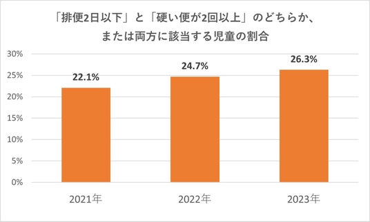 小学校の4人に1人が便秘の疑い?(特定非営利活動法人日本トイレ研究所「小・中学生の排便記録2023」より)