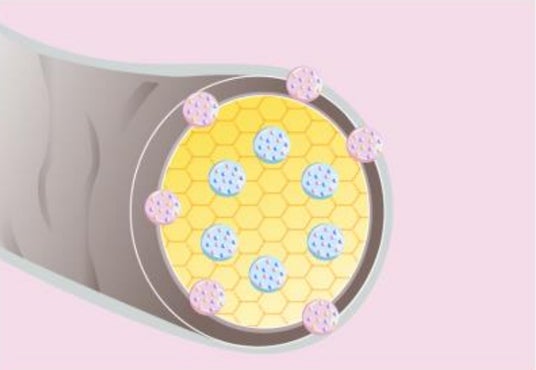特別な乳化方法によりナノ化した浸透型ナノリペアカプセル※7と持続型ナノリペアカプセル※8を配合し、ダメージ部位に脂質とタンパク質を補充します。さらに、水に流れにくい性質を持つペプチドオイル※9を内包。カプセル自体の素材にも補修効果があるため、ペプチドオイルを放出したあとも美髪をサポートします。