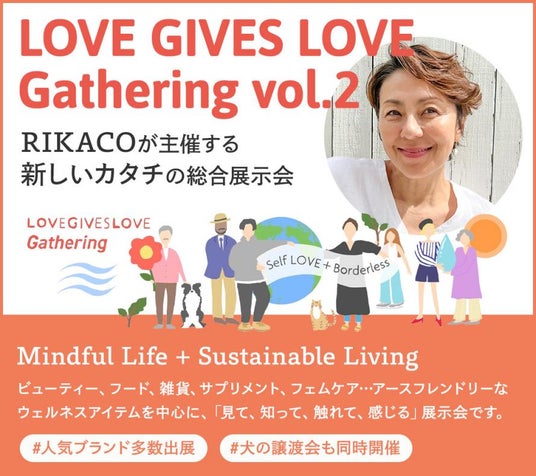 「LOVE GIVES LOVE Gathering」は、RIKACOさんが主催し、吉川千明さんをエグゼクティブサポーターに迎えたキュレーションイベントです。男性も女性も、あらゆるバックグラウンドや年齢層に関わらず、「見て、知って、触れて、感じる」ことを通じて、「Self LOVE」の本当の意味を見つけ、「ボーダーレス」な価値観を育むことで、自分が本当に求めるものを自由に選び、誰もが自分らしく輝けるライフスタイルを築くきっかけづくりとなることを目指したイベントです。