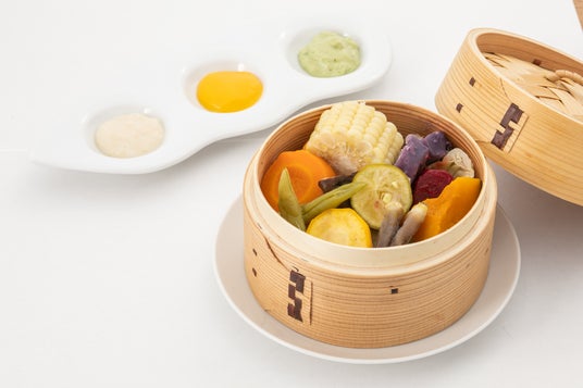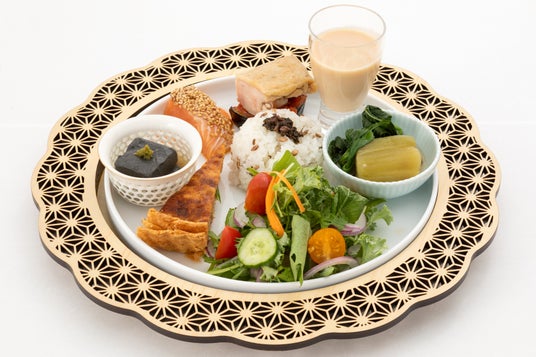 「hacci hacci芦屋本店」のランチメニューは月替わり。8種類のプレートと、3種類のオリジナル糀ディップでお召し上がりいただく季節の蒸し野菜で構成されています。