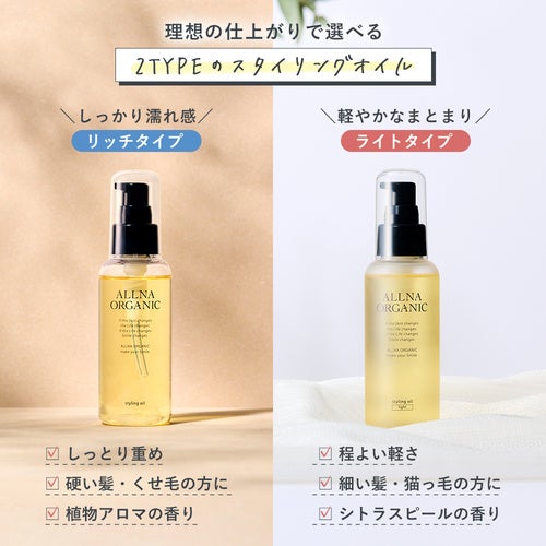 左:ALLNA ORGANIC スタイリングオイル 右:ALLNA ORGANIC スタイリングオイル ライト