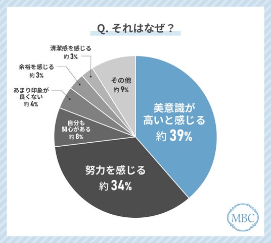 理由としては、目元や頭髪を見て「美意識が高いと感じる」という回答が多く見受けられました。