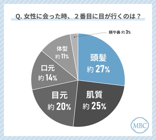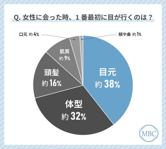 「次のうち、女性に会った時、1番最初に目が行くのはどこですか?最も近いものを一つ選んでください。」とアンケート調査した結果、