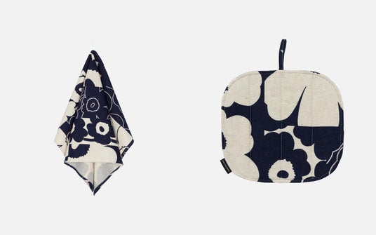 (左) ティータオル¥4,730 〈販売中〉 (右) ポットホルダー ¥3,960 〈販売中〉