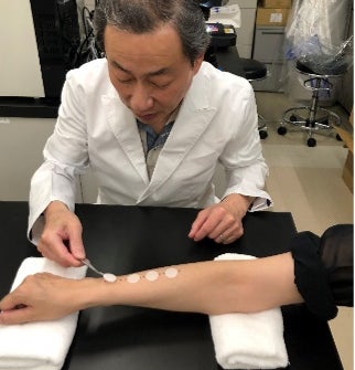図5. 温泉水を含ませたろ紙を腕に置く様子