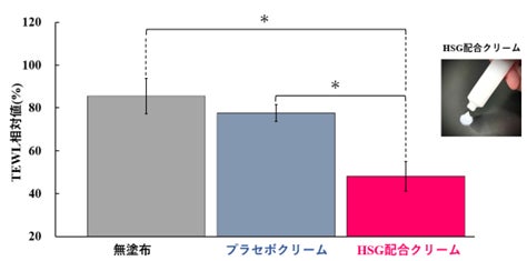 図5. HSG配合クリームによる経表皮水分蒸散量(TEWL)※3の抑制効果