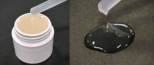 フィブロインはシルク繊維として様々な分野で応用利用されていますが、セリシンは利用が進んでいません。セリシンはフィブロイン繊維の取得過程で分解されてしまいます。しかし、天然状態の高分子量を維持したセリシンでは透明な被膜を形成し、寒天状のゲルを形成するといったユニークな機能を持ちます。ユースキン製薬と農研機構はこの機能に着目し、被膜形成能によって皮膚を保護・保湿できる天然由来の新たな化粧品素材の開発を目指しました。