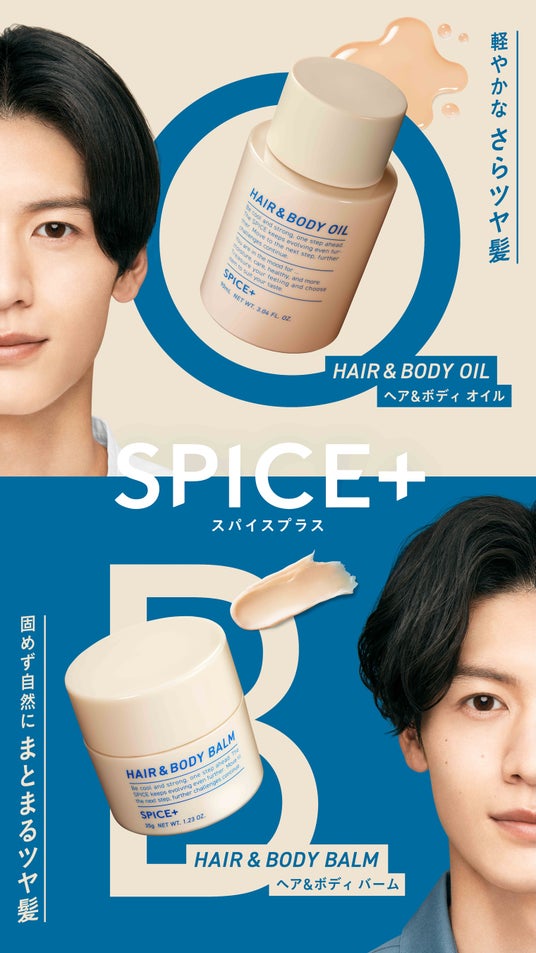 メンズヘアスタイリングブランド『SPICE+』より、新たにダメージ補修しながらスタイリングできるオイル&バームの2品を10月1日(火)(全国発売)追加新発売。