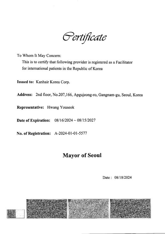 カンヘアジャパン合同会社(本社:東京都中央区、以下カンヘア)は、このたび日本のお客様向けに、韓国での自毛植毛手術を仲介する新サービスを開始しました。