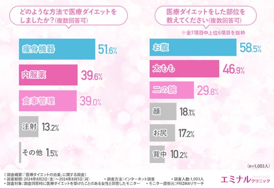 そこで今回、医療痩身サービスを展開する「エミナルクリニック」は、医療ダイエットを受けたことのある女性を対象に、「医療ダイエットの効果」に関する調査を実施しました。