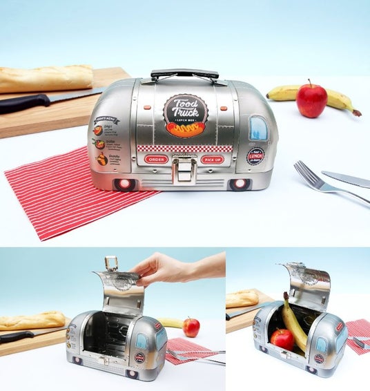 フードトラックの形をしたクラシックなブリキ製ランチボックス。