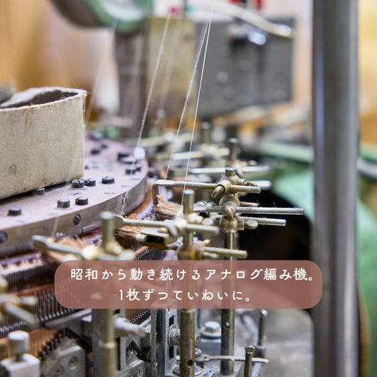 - 1枚ずつアナログ編み機で編んだ密度が高いしっかりとした生地