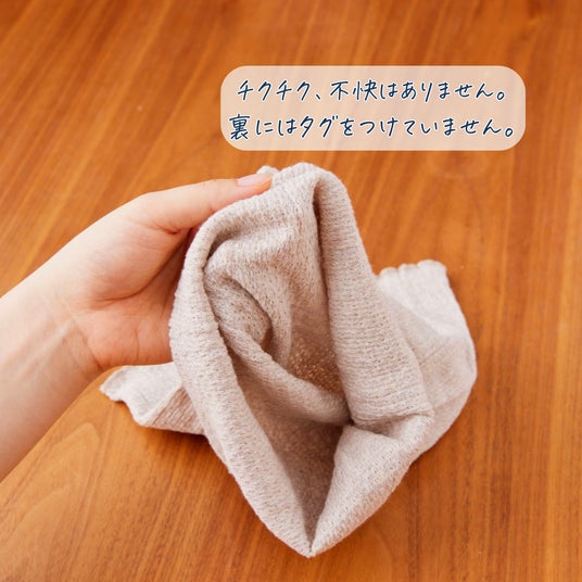 縫い目がない丸編み仕上げのため、どの部分が体にあたってもチクチク感はなし。刺繍の裏面も1枚ずつ手で糸切りを行って極力滑らかに仕上げています。メイドインジャパンならではの品質をお楽しみいただけます。